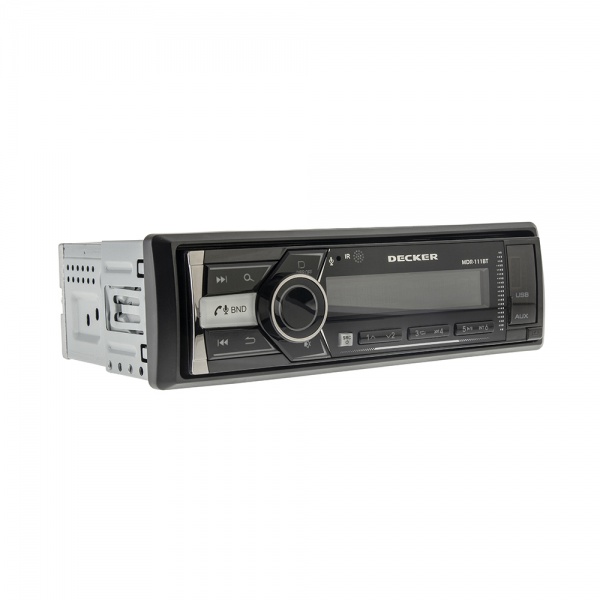 Автомагнітола Decker MDR-111 BT - чудовий вибір у ваш автомобіль. Формат магнітоли є бездисковим MP3 / USB / FM програвач з розміром установки 1 DIN. На передню панель винесені всі роз'єми, у тому числі AUX вхід. Магнітола має підтримку USB накопичувачів. Магнітола володіє рідкокристалічним дисплеєм з яскравим RGB підсвічуванням кнопок. Електронний тюнер у цьому пристрої з пам'яттю на 18 FM станцій, зручний пошук станцій, сканування ФМ діапазону. Є режим повтору, пошуку та випадкового відтворення. Підходить для автомобілів з бортовою мережею 12 В. Дана магнітола підтримує максимальну вихідну потужність 4х45 Вт