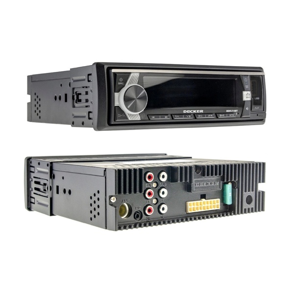 Автомагнітола Decker MDR-210 - 1Din MP3 програвач з FM приймачем, DSP процесором та вбудованим підсилювачем D класу. Пристрій має 4 канальний підсилювач потужністю 95Вт на канал, а також 6 лінійних виходів для підключення додадткових зовнішніх підсилювачей. Обробку звуку здійснюється через DSP процесор. Для налаштування параметрів звуку та дистанційного керування встановіть в телефон додаток Decker Audio.