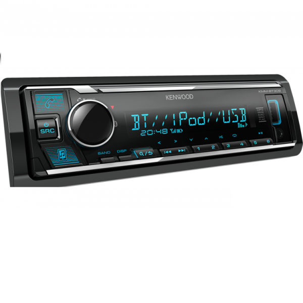 Автомагнитола Kenwood KMM-BT309 - отличный выбор в ваш автомобиль с Bluetooth для общения и передачи музыки на устройство. Бездисковый MP3 / USB / FM / AUX проигрыватель с размером установки 1DIN. На переднюю панель вынесен USB вход. Магнитола обладает жидкокристаллическим дисплеем с яркой подсветкой кнопок и бегущей строкой. Электронный тюнер и удобный поиск станций, сканирование ФМ диапазона. Есть режим повтора, поиска и случайного воспроизведения, а также 13-полосный эквалайзер. Подходит для автомобилей с бортовой сетью 12 В. Данная магнитола поддерживает максимальную выходную мощность 4х50 Вт. Есть режим режим воспроизведения в любых форматах WMA, WAV, FLAC, AAC