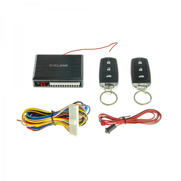 Центральний замок CYCLONE RD-33A – чудовий вибір для вашого автомобіля. Це зручний засіб нового покоління, який можна використовувати у будь-яких автомобілях замість сигналізації або окремо. Призначений набір для встановлення в машині та управління центральним замком шляхом подачі імпульсу, в комплекті блок управління, два брелоки, проводка та кріплення, інструкція. Пристрій має високий технічний рівень виготовлення за допомогою сучасних технологій, надійно та зручно в експлуатації. Може працювати при будь-яких температурах, не шумить і завдяки своїм характеристикам значно полегшує процес відкривання/закривання автомобіля. Основні характеристики CYCLONE RD-33A: Тип - модуль управління центральним замком, комплект
