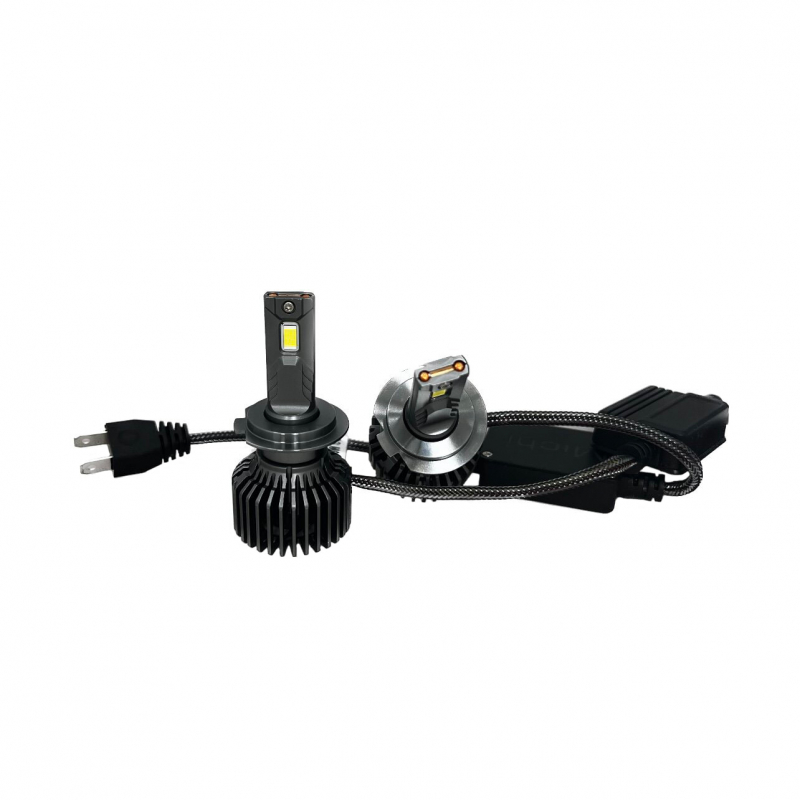 Комплект автомобільних світлодіодних LED ламп MICHI MI LED Can H7 (5500K) - 75W, 2 шт – відмінний вибір для вашого автомобіля. Це надійна лампа, яка допоможе вирішити проблему поганої видимості на дорозі вночі. Технологія LED набагато сучасніша за галогенову, постійно розвивається, на ринку з'являються нові моделі якісних авто ламп. Лед лампа світить яскравіше, світловий потік потужніший, можна вибрати відтінок світла. При правильному встановленні лампи на виході отримуємо потужне і яскраве світло на ближньому і широке, збільшене дальнє. Одна з найкращих LED ламп, коли водій отримує максимум світла – ця модель. Перевірена часом конструкція, габарити лампи, відповідність формі стандартної галогенової лампи, правильне розташування діода – це гарантує, що світловий потік буде спрямований правильно, у потрібному напрямку, забезпечуючи відмінну освітленість у місті чи на трасі. Колірна температура 5500 К дає відмінний баланс, що дозволить добре пробивати неосвітлену дорогу вночі. Активна система охолодження з вентилятором гарантує тривалий термін роботи