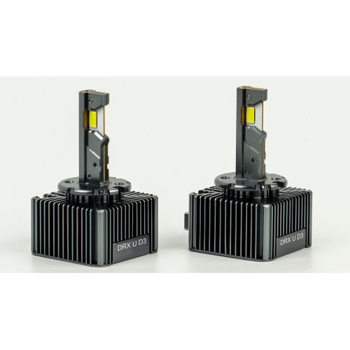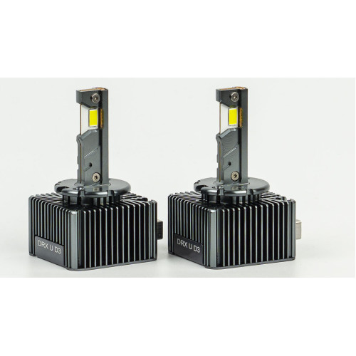 Комплект автомобільних світлодіодних LED ламп DriveX D3 DLX Ultra 55W 6000K CAN, 2 шт. – відмінний вибір для вашого автомобіля. Це надійна лампа, яка допоможе вирішити проблему поганої видимості на дорозі вночі. Технологія LED набагато сучасніша за галогенову, постійно розвивається, на ринку з'являються нові моделі якісних авто ламп. Лед лампа світить яскравіше, світловий потік потужніший, можна вибрати відтінок світла. При правильному встановленні лампи на виході отримуємо потужне і яскраве світло на ближньому і широке, збільшене дальнє. Одна з найкращих LED ламп, коли водій отримує максимум світла – ця модель. Перевірена часом конструкція, габарити лампи, відповідність формі стандартної галогенової лампи, правильне розташування діода – це гарантує, що світловий потік буде спрямований правильно, у потрібному напрямку, забезпечуючи відмінну освітленість у місті чи на трасі. Колірна температура 6000 К дає відмінний баланс, що дозволить добре пробивати неосвітлену дорогу вночі. Активна система охолодження з вентилятором гарантує тривалий термін роботи
