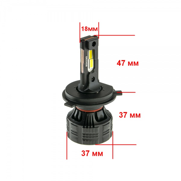 LED лампи DECKER PL-03 H4 H/L 5000K Світловий потік перевищує світловий потік ксенонового світла. Зовнішній драйвер оснащений модулем обходу помилки бортового комп'ютера. Інноваційна система охолодження , системи контролю температури чіпа та застосування високошвидкісного вентилятора,