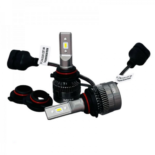 Комплект автомобільних світлодіодних LED ламп MICHI MI LED 9005/9006 (5500K) - 35W, 2 шт – відмінний вибір для вашого автомобіля. Це надійна лампа, яка допоможе вирішити проблему поганої видимості на дорозі вночі. Технологія LED набагато сучасніша за галогенову, постійно розвивається, на ринку з'являються нові моделі якісних авто ламп. Лед лампа світить яскравіше, світловий потік потужніший, можна вибрати відтінок світла. При правильному встановленні лампи на виході отримуємо потужне і яскраве світло на ближньому і широке, збільшене дальнє. Одна з найкращих LED ламп, коли водій отримує максимум світла – ця модель. Перевірена часом конструкція, габарити лампи, відповідність формі стандартної галогенової лампи, правильне розташування діода – це гарантує, що світловий потік буде спрямований правильно, у потрібному напрямку, забезпечуючи відмінну освітленість у місті чи на трасі. Колірна температура 5500 К дає відмінний баланс, що дозволить добре пробивати неосвітлену дорогу вночі. Активна система охолодження з вентилятором гарантує тривалий термін роботи