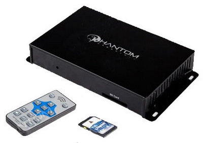 Виведення зображення з одного каналу. Стандартна комплектація Основний блок Проводу живлення та підключення камер Мікрофон SD карта 4Гб Пульт 2,4ГГц Інструкція Цифровий відеореєстратор Phantom VR4x4(m) забезпечує можливість підключення та запису зображення з 4-х камер. Крім цього, до відеореєстратора додано функцію запису не тільки відео, а й звуку, що дозволяє повністю контролювати ситуацію навколо Вашого автомобіля та всередині нього.